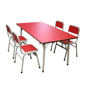 Mesa rectangular con sillas ignífugas para jardín